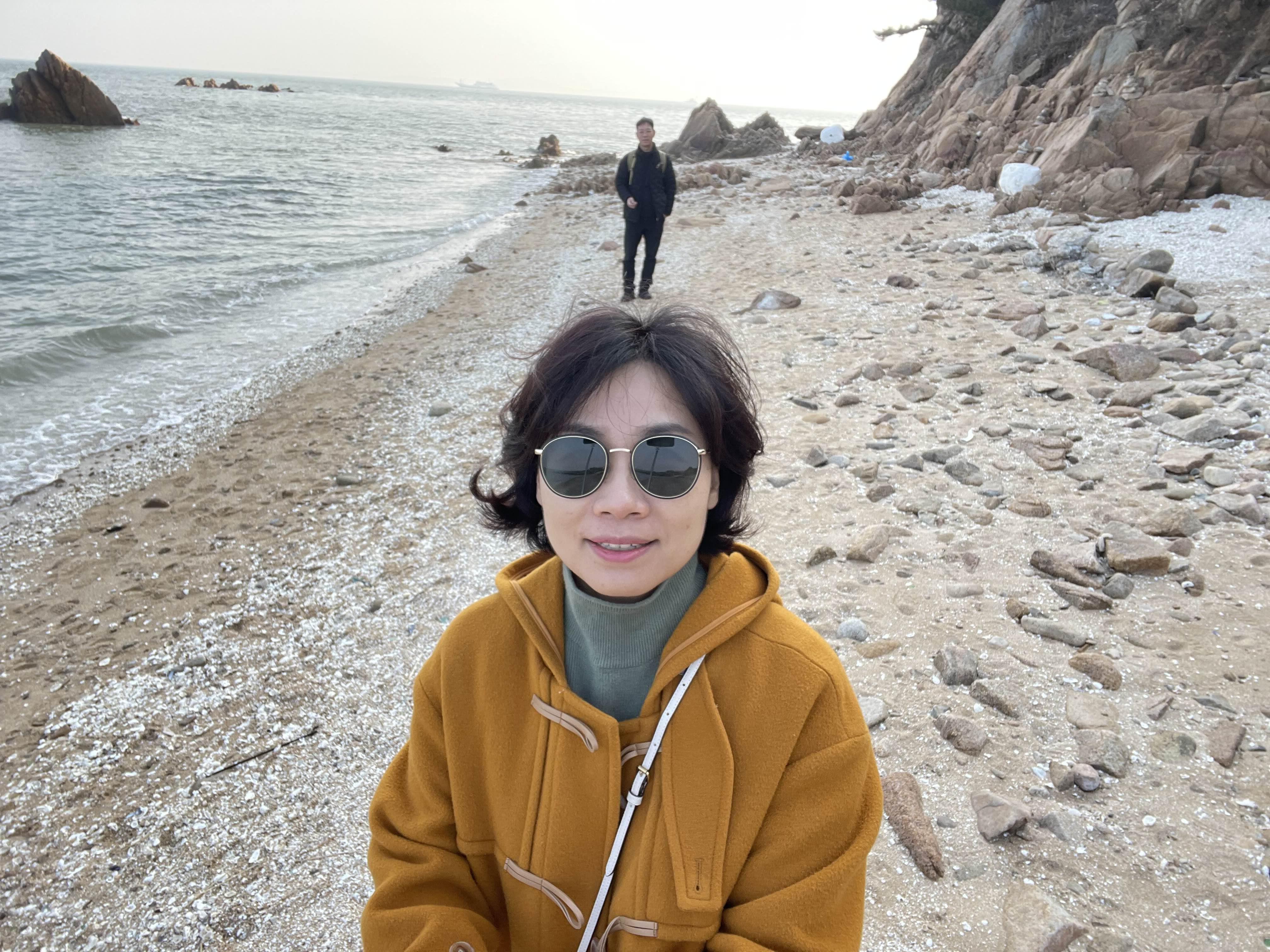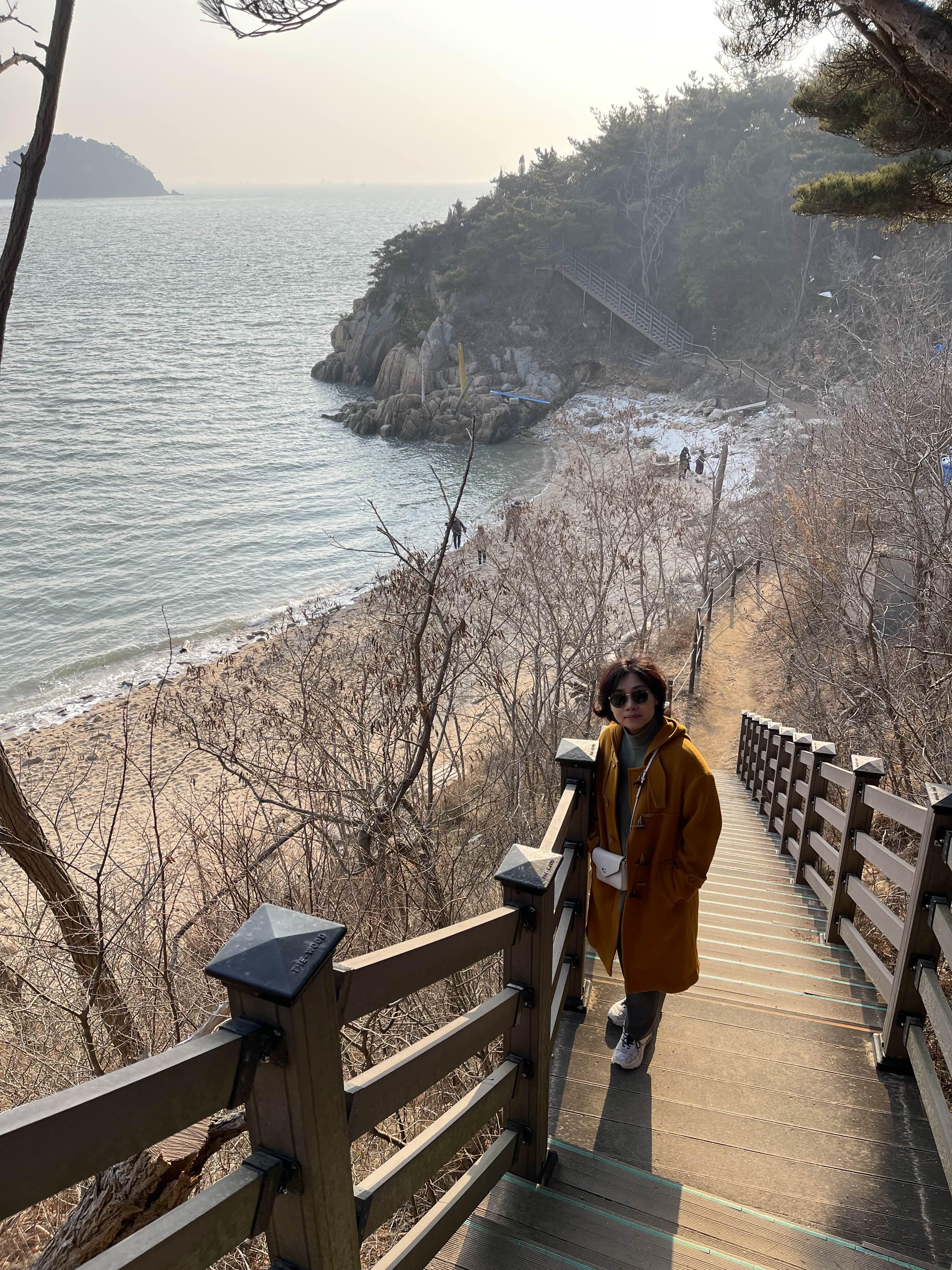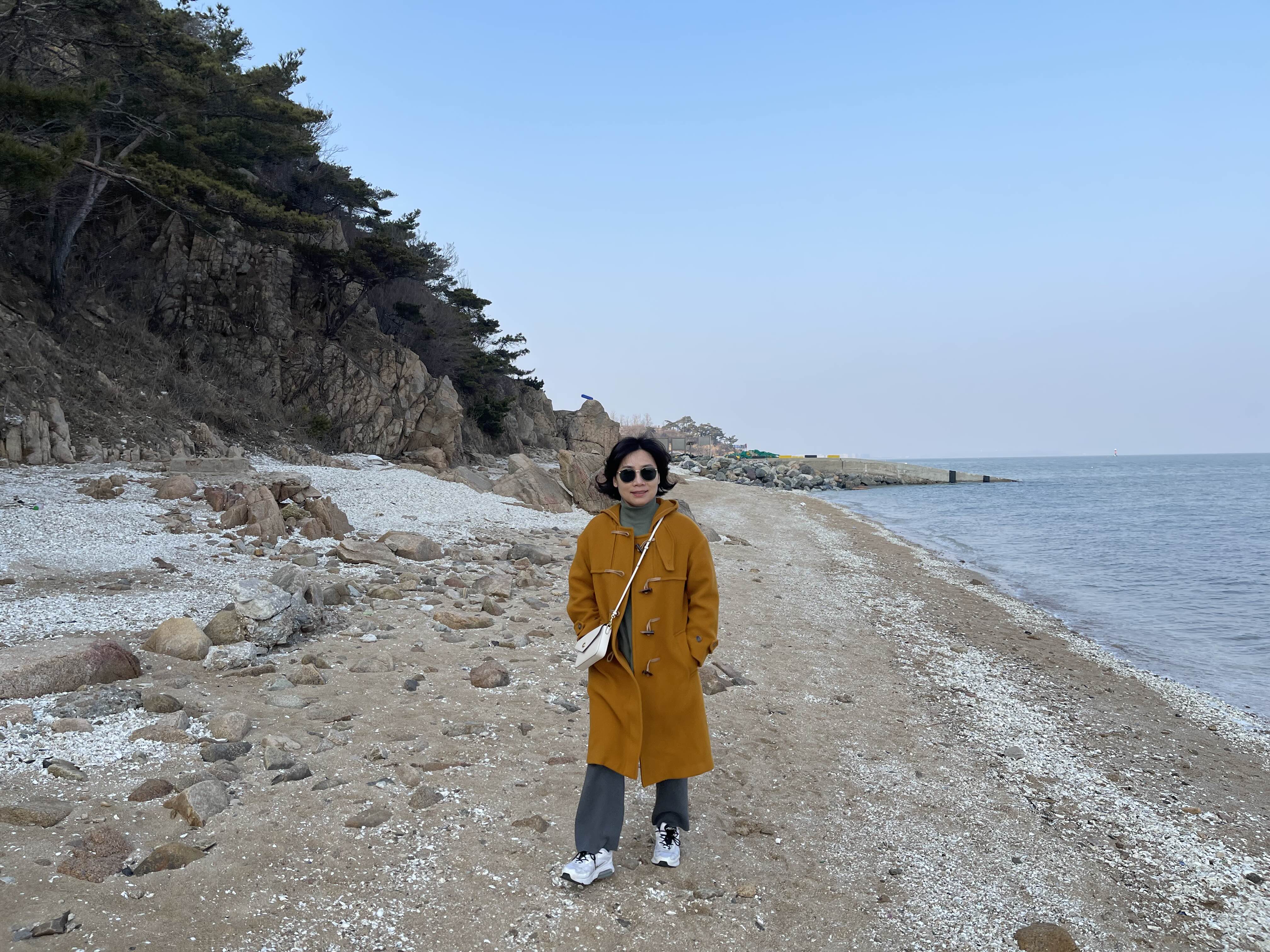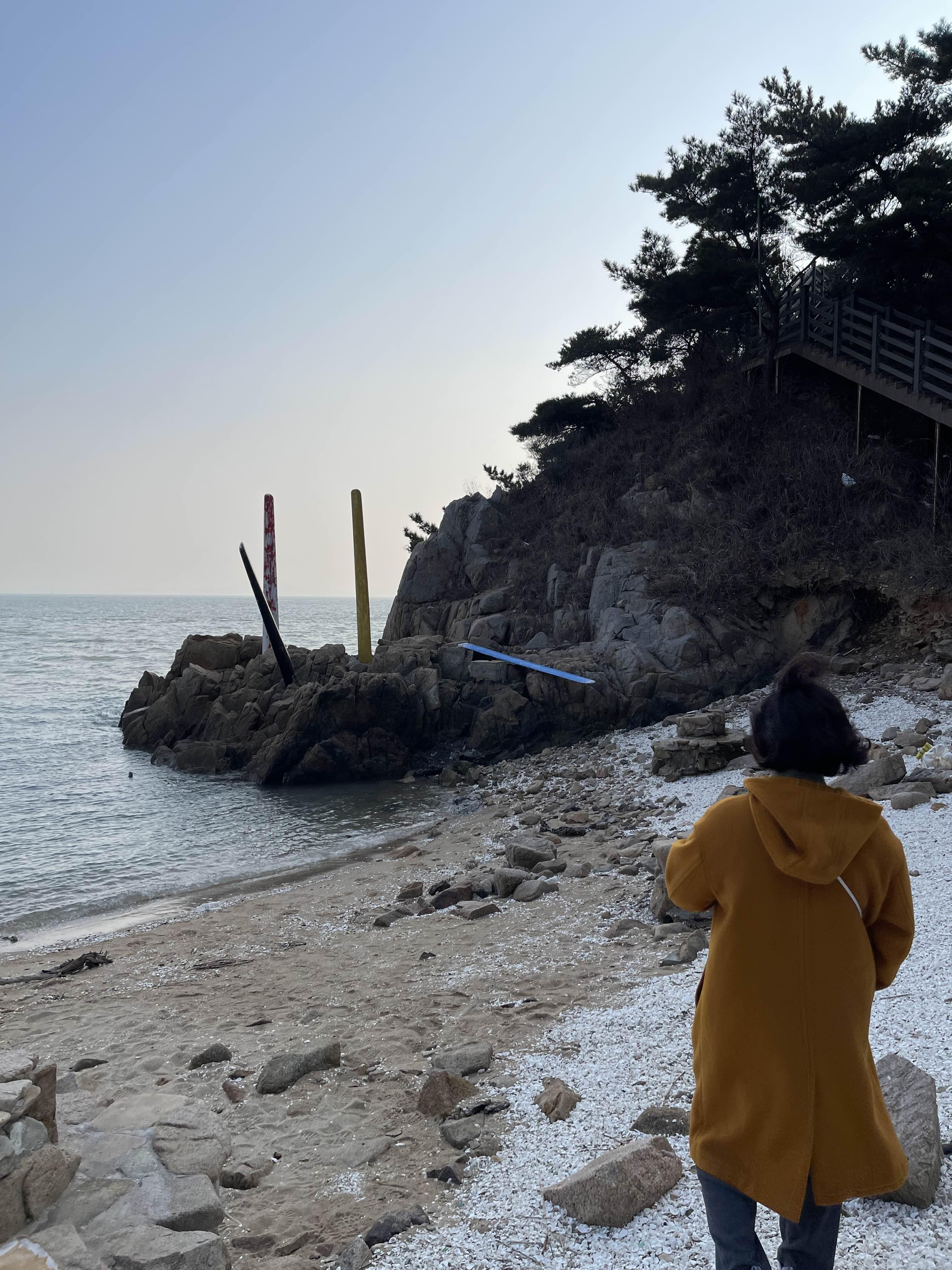 명사의 해변 앞