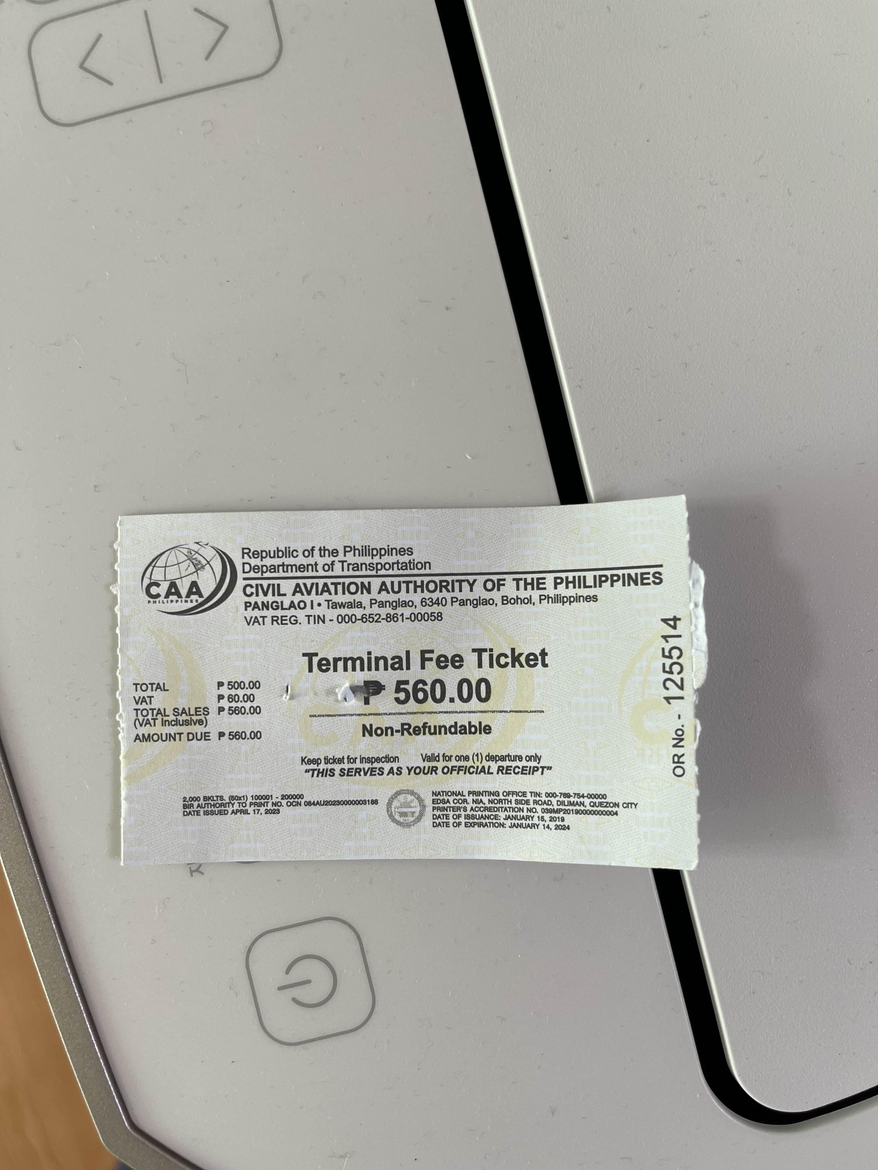 필리핀 보홀 팡라오공항 출국시 공항세 징수